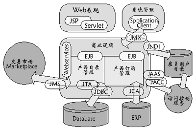 J2EE(Java 2 Enterprise Edition)是建立在Java 2平台上的企业级应用的解决方案。J2EE技术的基础便是Java 2平台,不但有J2SE平台的所有功能,同时还提供了对EJB,Servlet,JSP,XML等技术的全面支持,其最终目标是成为一个支持企业级应用开发的体系结构,简化企业解决方案的开发,部署和管理等复杂问题。事实上,J2EE已经成为企业级开发的工业标准和首选平台。 J2EE并非一个产品,而是一系列的标准。市场上可以看到很多实现了J2EE的产品,如BEA WebLogic,IBM WebSphere以及开源的JBoss等等。 J2EE,是sun公司提出的一个标准,符合这个标准的产品叫"实现";其中你下载的sun公司的j2ee开发包中就有一个这样的"实现",而jboss,weblogic,websphere都是j2ee标准的一个"实现"。由于jboss,weblogic,websphere自身带有j2ee的api,所以可以不使用sun的j2ee实现。 一. J2EE的概念 目前,Java 2平台有3个版本,它们是适用于小型设备和智能卡的Java 2平台Micro版(Java 2 Platform Micro Edition,J2ME)、适用于桌面系统的Java 2平台标准版(Java 2 Platform Standard Edition,J2SE)、适用于创建服务器应用程序和服务的Java2平台企业版(Java 2 Platform Enterprise Edition,J2EE)。 J2EE是一种利用Java 2平台来简化企业解决方案的开发、部署和管理相关的复杂问题的体系结构。J2EE技术的基础就是核心Java平台或Java 2平台的标准版,J2EE不仅巩固了标准版中的许多优点,例如"编写一次、随处运行"的特性、方便存取数据库的JDBC API、CORBA技术以及能够在Internet应用中保护数据的安全模式等等,同时还提供了对 EJB(Enterprise JavaBeans)、Java Servlets API、JSP(Java Server Pages)以及XML技术的全面支持。其最终目的就是成为一个能够使企业开发者大幅缩短投放市场时间的体系结构。 J2EE体系结构提供中间层集成框架用来满足无需太多费用而又需要高可用性、高可靠性以及可扩展性的应用的需求。通过提供统一的开发平台,J2EE降低了开发多层应用的费用和复杂性,同时提供对现有应用程序集成强有力支持,完全支持Enterprise JavaBeans,有良好的向导支持打包和部署应用,添加目录支持,增强了安全机制,提高了性能。 二. J2EE的优势 J2EE为搭建具有可伸缩性、灵活性、易维护性的商务系统提供了良好的机制: 高效的开发: J2EE允许公司把一些通用的、很繁琐的服务端任务交给中间件供应商去完成。这样开发人员可以集中精力在如何创建商业逻辑上,相应地缩短了开发时间。高级中间件供应商提供以下这些复杂的中间件服务: 状态管理服务 -- 让开发人员写更少的代码,不用关心如何管理状态,这样能够更快地完成程序开发。 三. J2EE 的四层模型 J2EE使用多层的分布式应用模型,应用逻辑按功能划分为组件,各个应用组件根据他们所在的层分布在不同的机器上。事实上,sun设计J2EE的初衷正是为了解决两层模式(client/server)的弊端,在传统模式中,客户端担当了过多的角色而显得臃肿,在这种模式中,第一次部署的时候比较容易,但难于升级或改进,可伸展性也不理想,而且经常基于某种专有的协议――通常是某种数据库协议。它使得重用业务逻辑和界面逻辑非常困难。现在J2EE 的多层企业级应用模型将两层化模型中的不同层面切分成许多层。一个多层化应用能够为不同的每种服务提供一个独立的层,以下是 J2EE 典型的四层结构: 运行在客户端机器上的客户层组件 J2EE应用程序组件 客户层组件 正如下图所示的客户层那样,web层可能包含某些 JavaBean 对象来处理用户输入,并把 业务层组件 有三种企业级的bean: 会话(session) beans, 实体(entity) beans, 和 消息驱动(message-driven) beans. 会话bean 表示与客户端程序的临时交互. 当客户端程序执行完后, 会话bean 和相关数据就会消失. 相反, 实体bean 表示数据库的表中一行永久的记录. 当客户端程序中止或服务器关闭时, 就会有潜在的服务保证实体bean 的数据得以保存.消息驱动 bean 结合了会话bean 和 JMS的消息监听器的特性, 允许一个业务层组件异步接收JMS 消息. 企业信息系统层 我们就J2EE的各种组件、服务和API,进行更加详细的阐述,看看在开发不同类型的企业级应用时,根据各自需求和目标的不同,应当如何灵活使用并组合不同的组件和服务。 · Servlet Servlet是Java平台上的CGI技术。Servlet在服务器端运行,动态地生成Web页面。与传统的CGI和许多其它类似CGI的技术相比,Java Servlet具有更高的效率并更容易使用。对于Servlet,重复的请求不会导致同一程序的多次转载,它是依靠线程的方式来支持并发访问的。 · JSP JSP(Java Server Page)是一种实现普通静态HTML和动态页面输出混合编码的技术。从这一点来看,非常类似Microsoft ASP、PHP等技术。借助形式上的内容和外观表现的分离,Web页面制作的任务可以比较方便地划分给页面设计人员和程序员,并方便地通过JSP来合成。在运行时态,JSP将会被首先转换成Servlet,并以Servlet的形态编译运行,因此它的效率和功能与Servlet相比没有差别,一样具有很高的效率。 · EJB EJB定义了一组可重用的组件:Enterprise Beans。开发人员可以利用这些组件,像搭积木一样建立分布式应用。在装配组件时,所有的Enterprise Beans都需要配置到EJB服务器(一般的Weblogic、WebSphere等J2EE应用服务器都是EJB服务器)中。EJB服务器作为容器和低层平台的桥梁管理着EJB容器,并向该容器提供访问系统服务的能力。所有的EJB实例都运行在EJB容器中。EJB容器提供了系统级的服务,控制了EJB的生命周
